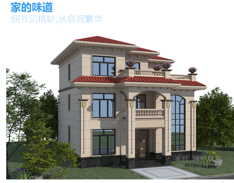 11.7×11.92米 三層歐式別墅 占地面積128.63平方 編號:2023091789